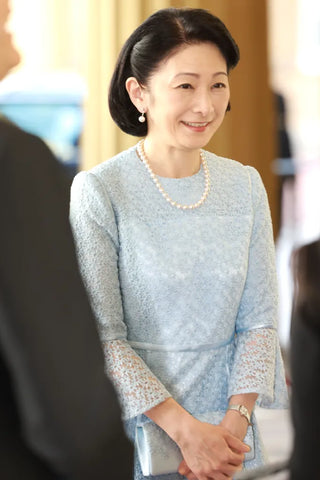 She has a beautiful pearl tiara, consisting of 450 brilliant-cut diamonds and 10 Australian pearls, worth about 50,000 euros, very luxurious and exquisite.