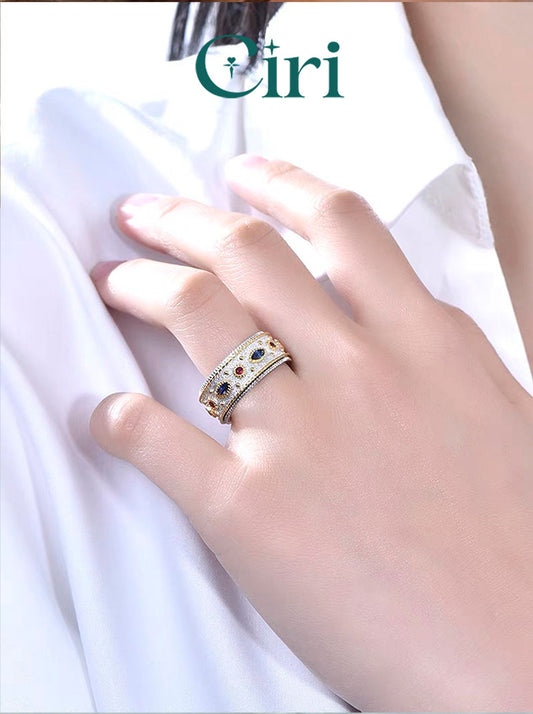 High quality AAA grade 925 sterling silver Colorful Round Threaded Vintage Ring MATERIALS: Rhodium-plated copper/925...