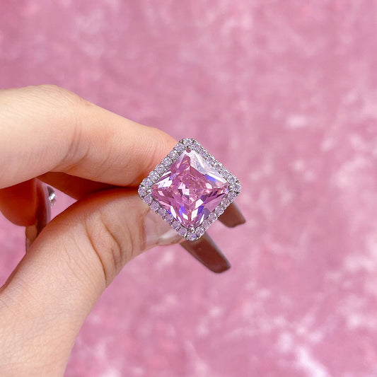 High Quality AAA Pink Square Diamond Ring Material: Grade 5A cubic zirconia gemstone/rhodium-plated copper Shape:...