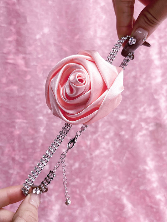 High quality AAA silk rose choker Material: Grade 5A cubic zirconia gemstone/rhodium plated copper/silk Shape:...