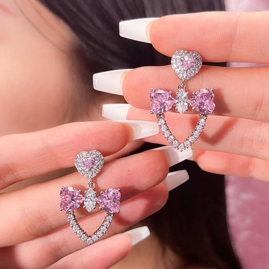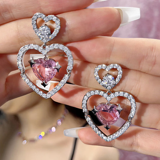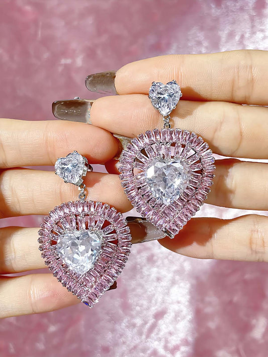 High quality AAA premium ice crystal love earrings Material: 5A grade cubic zirconia gemstone/rhodium-plated copper/crystal/925...