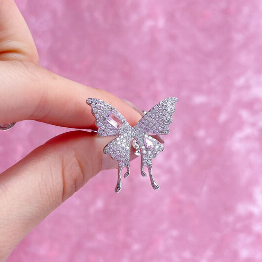 High Quality AAA Liquid Butterfly Pink Diamond Ring Material: Grade 5A cubic zirconia gemstone/rhodium plated...