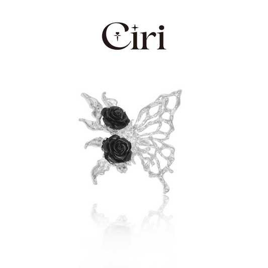 High quality AAA grade 925 sterling silver Black Rose Embellished Butterfly Shape Ring MATERIALS: Rhodium-plated...