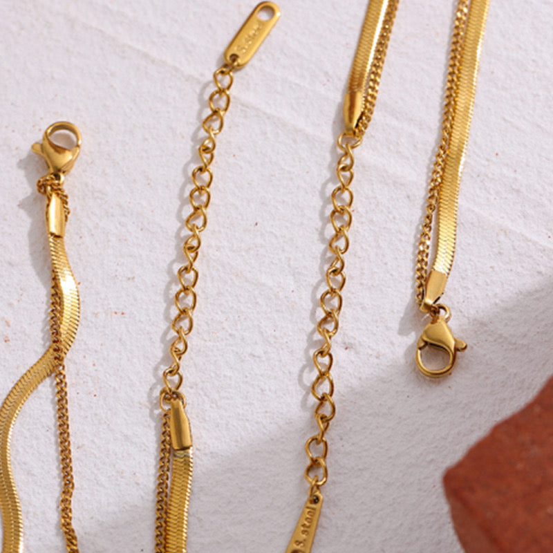 ❤18K Gold Plated Snake Chain Choker Necklace: This is Herringbone Double layer necklace, The simplicity reveals a natural and casual feeling, and has a great sense of design. You don't need to look for other stacking necklaces.