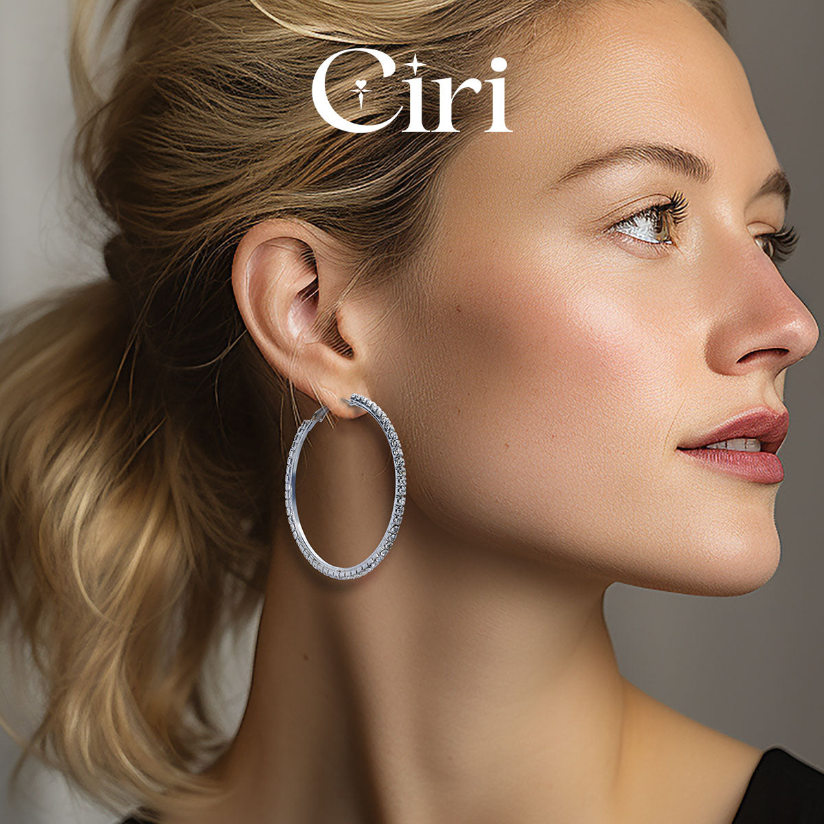 - Shape: The design of the earrings is a large circle shape. Different from the traditional ordinary style, its surface is covered with diamonds, and each one is carefully polished and sparkling.
