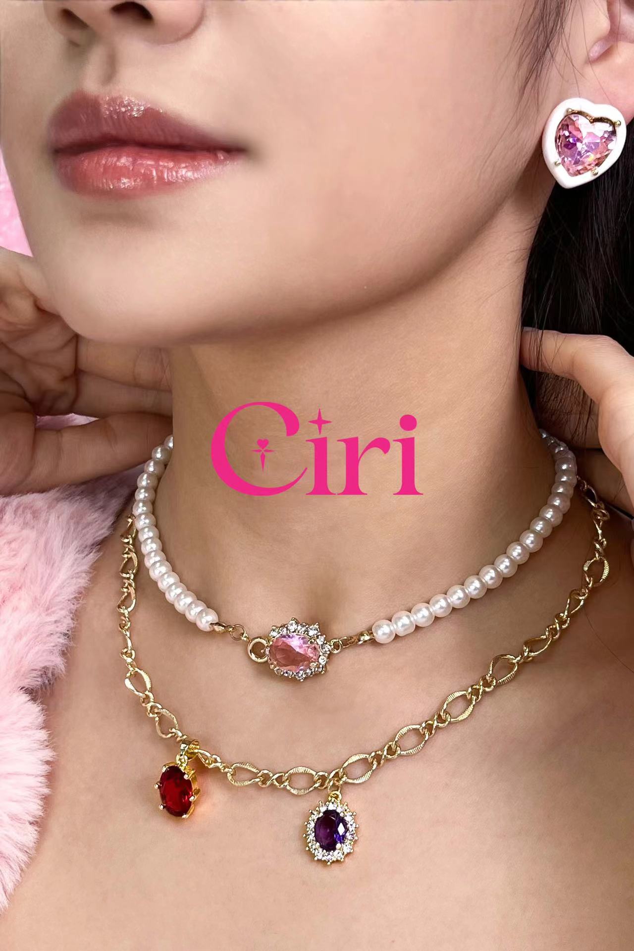 The choker of red-purple gemstones necklaces and pearl-pink gemstones chokers can better show off your neck lines and collarbones, exuding a sweet and romantic atmosphere while also adding a personalized retro charm.