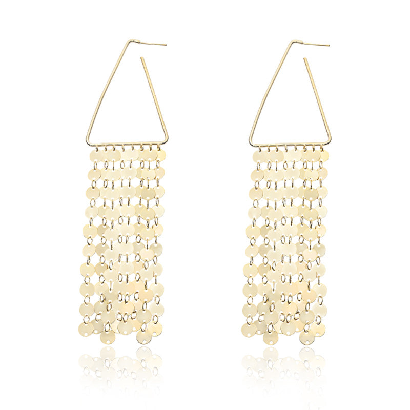 - High quality AAA Dazzling gold triangle sequin tassel earrings