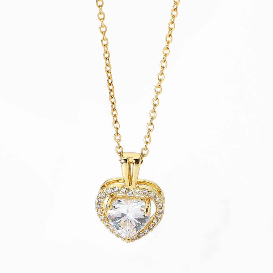 - Shape: The chain of the necklace is gold, the pendant is white love zircon, the outer ring is a circle of small white diamonds, and the gold base makes the gemstones look more sparkling.