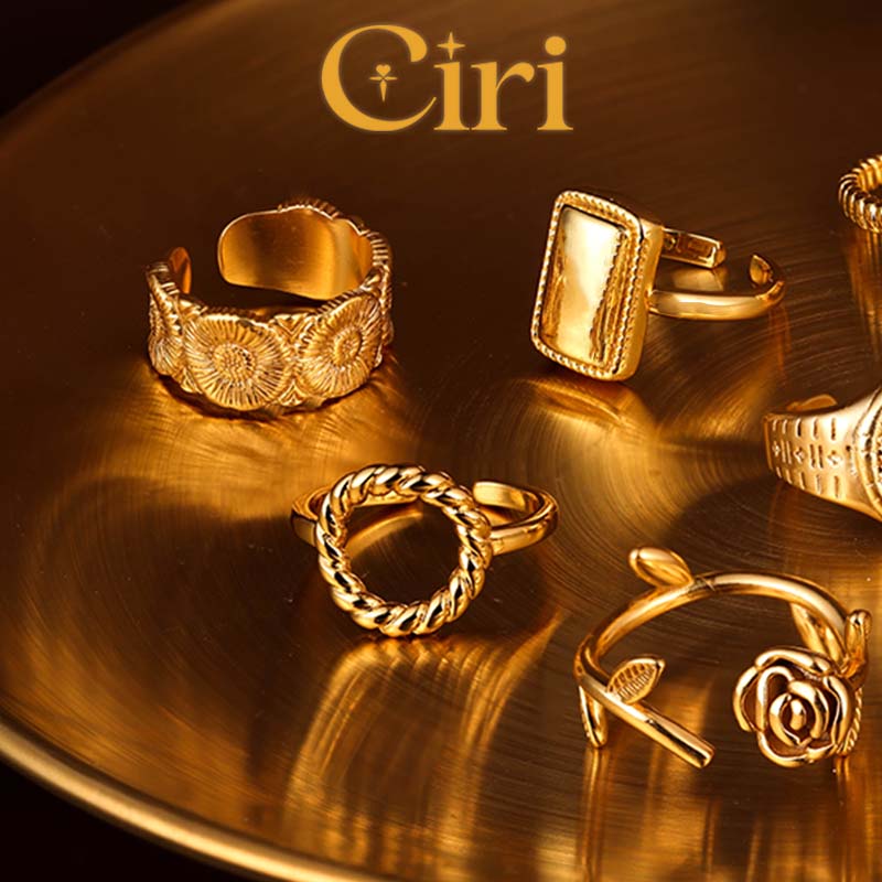 - High quality AAA grade Gold Roman Sculpture Floral Adjustable Round Minimalist Ring