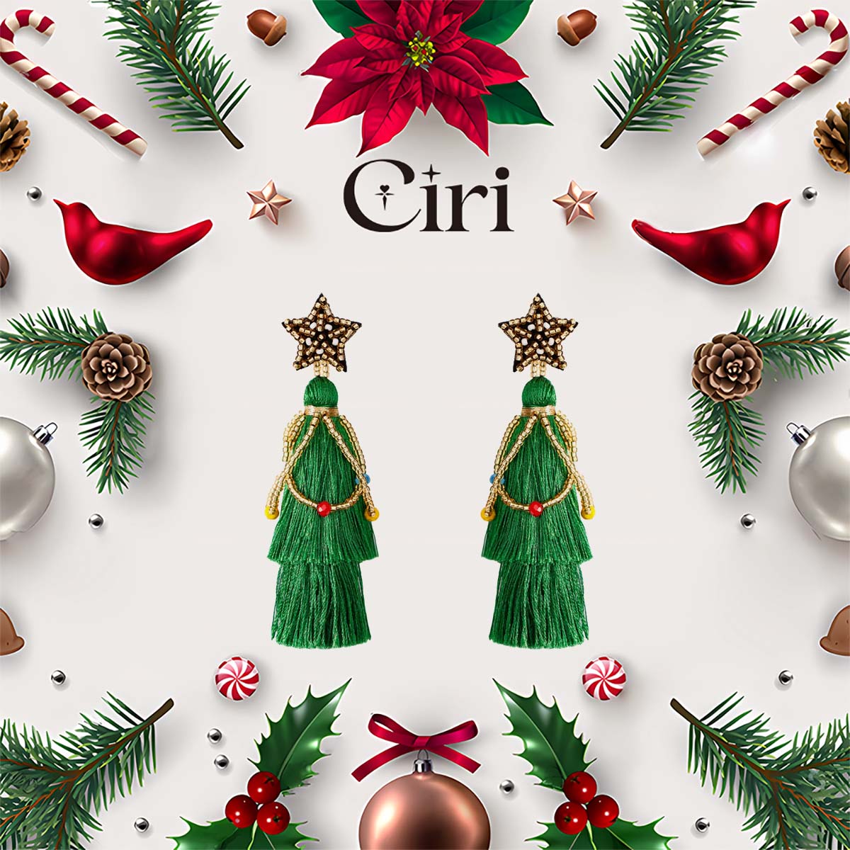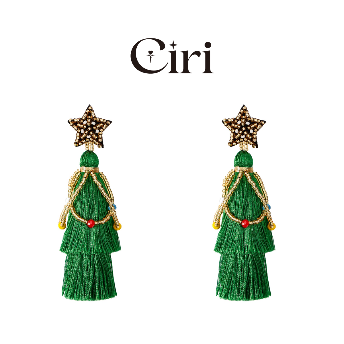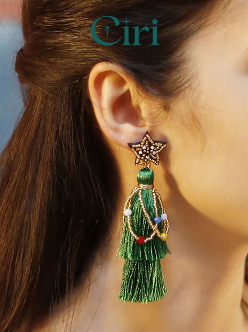 These handmade cotton rope tassel earrings exude a strong ethnic flavor and take on a charming Christmas tree shape. A golden five-pointed star is embedded at the top of the earrings, adding a unique accent to the overall look. The cotton rope tassels are meticulously hand-woven to showcase the exquisite craftsmanship. The bottoms of the earrings are adorned with colorful beads that add a lively and festive touch to the overall look. These earrings are both a work of art and a favorite decoration for the Christmas season, perfect for showing off your unique taste in festive cheer.