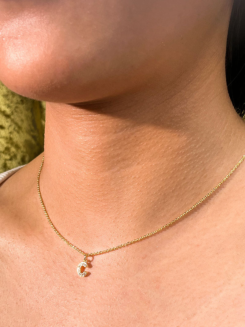 ❤26 Letter Pendant Single Layer Necklace: This is a simple and classic design single layered gold necklace with a free choice of 26 letters of the alphabet to form a name or meaningful word to express your personality or to show love with someone you love. The letters are studded with zirconia stones, not over the top, but very sparkly. It goes with almost any outfit and occasion, is very delicate and small, and can be worn to make the collarbone very sexy. It's also great to show off by layering it with other long necklaces.