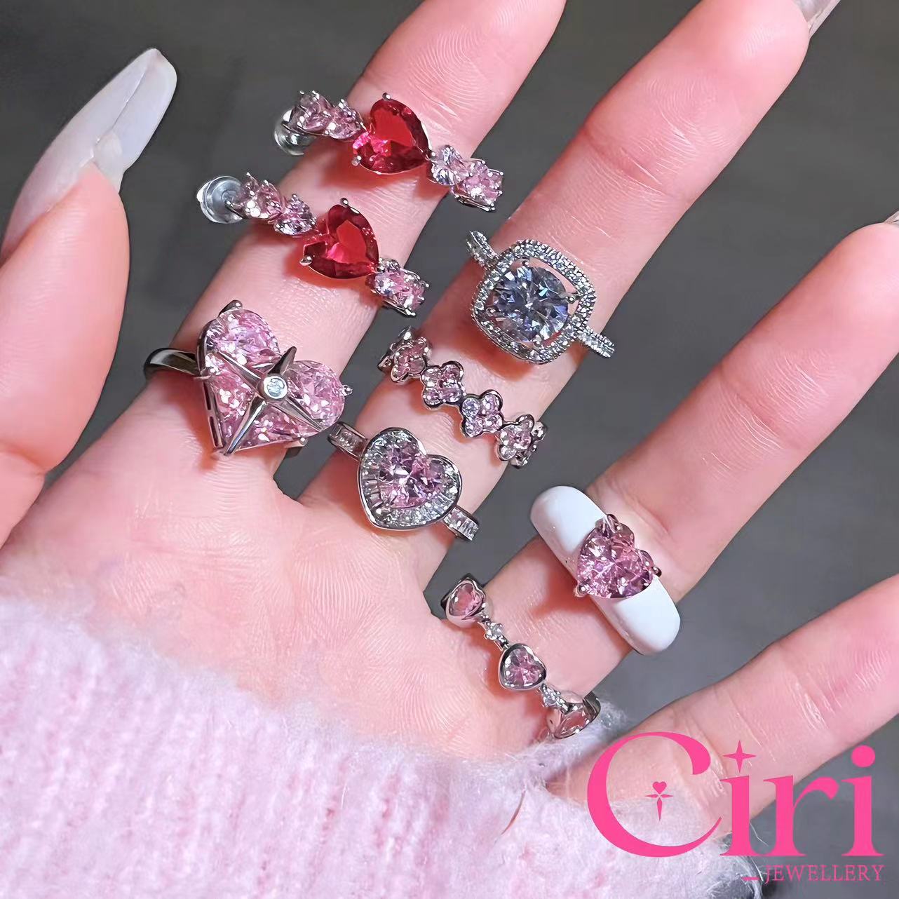 - SHAPE:The rings are crafted with white drip glaze, and the pink heart-shaped diamonds are surrounded in the middle .