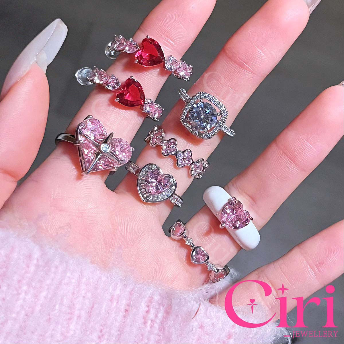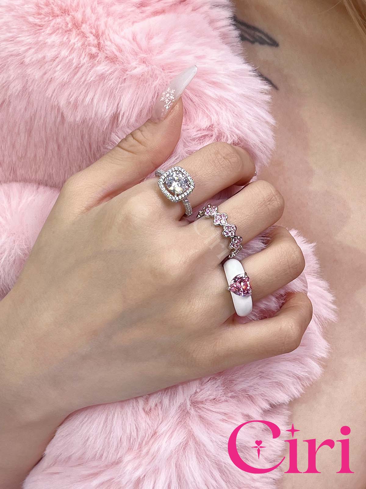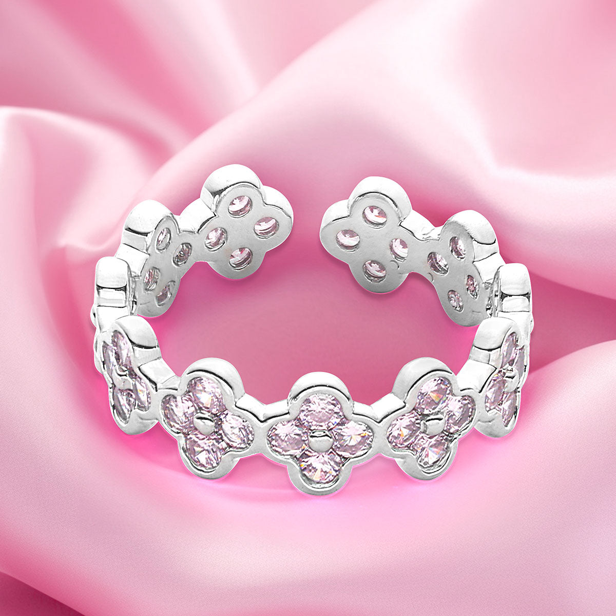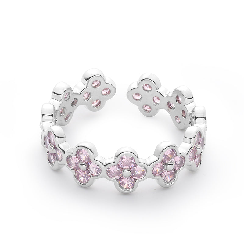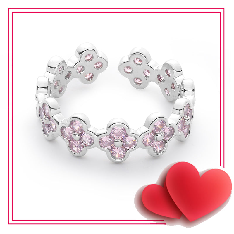 - The ring is skillfully composed of multiple pink clover zirconia, the four-leaf clover is the lucky talisman of the princess, which will bring good fortune and romantic love.
