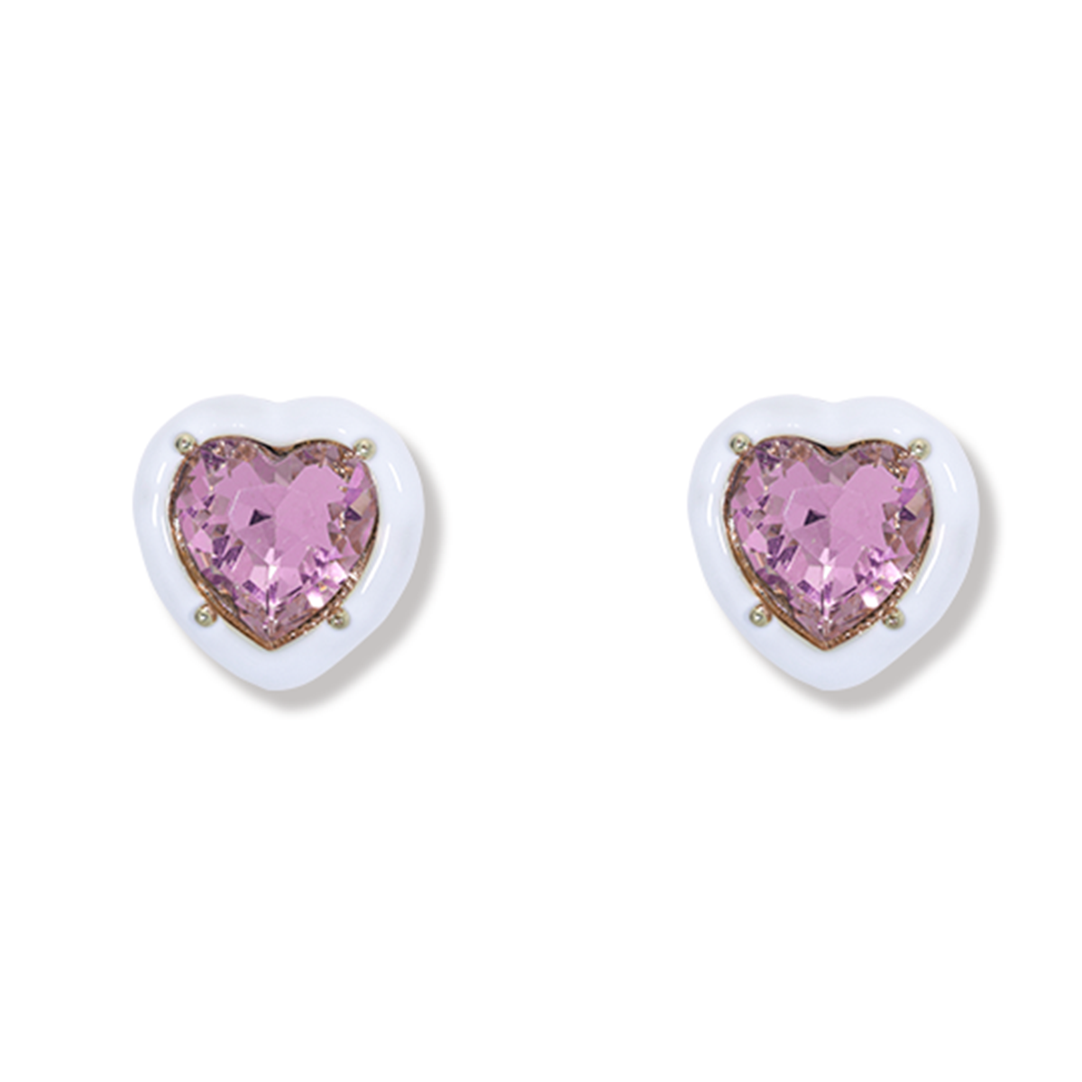 - SHAPE: Each diamond is like a dreamy star, skillfully set in a white glazed heart design. The carefully cut pink synthetic diamonds on the earrings reveal subtle luxury, and wearing these earrings is like being immersed in fond memories of a childhood princess story full of dreams and happiness.