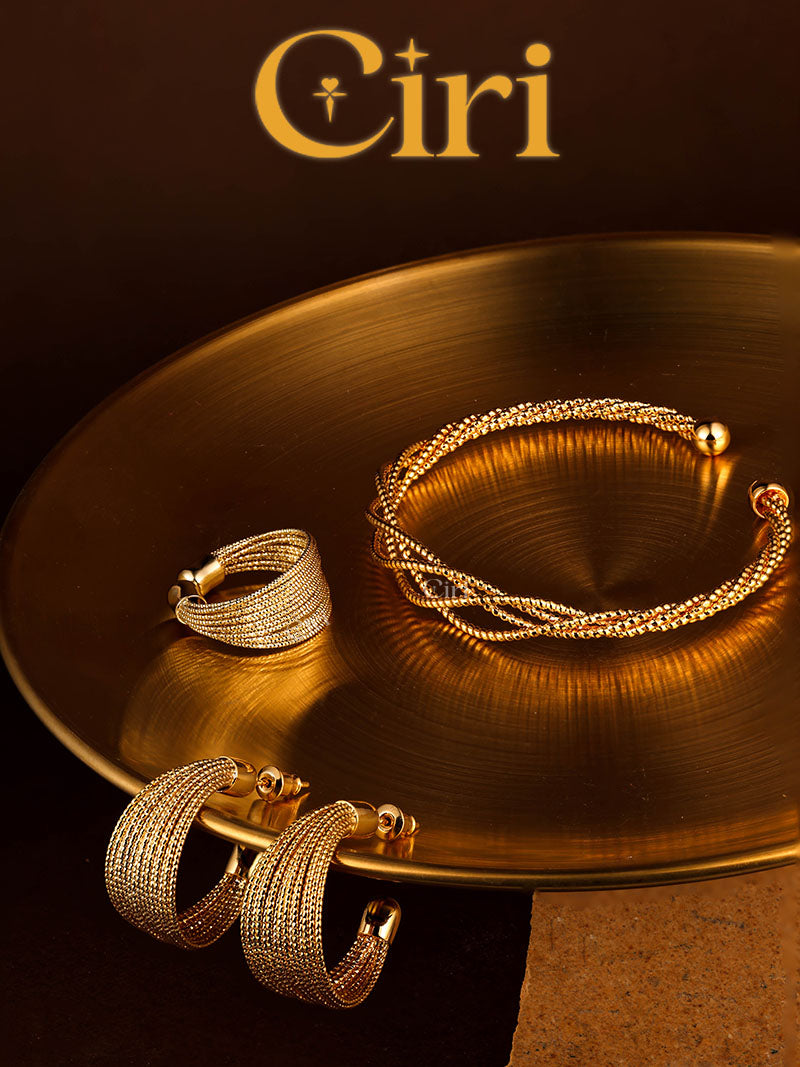- High quality AAA Twisted Braid Styling Gold Bangle