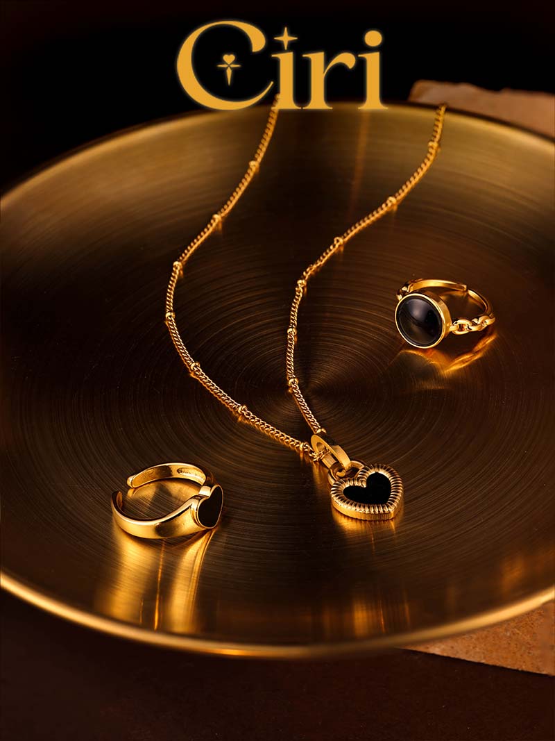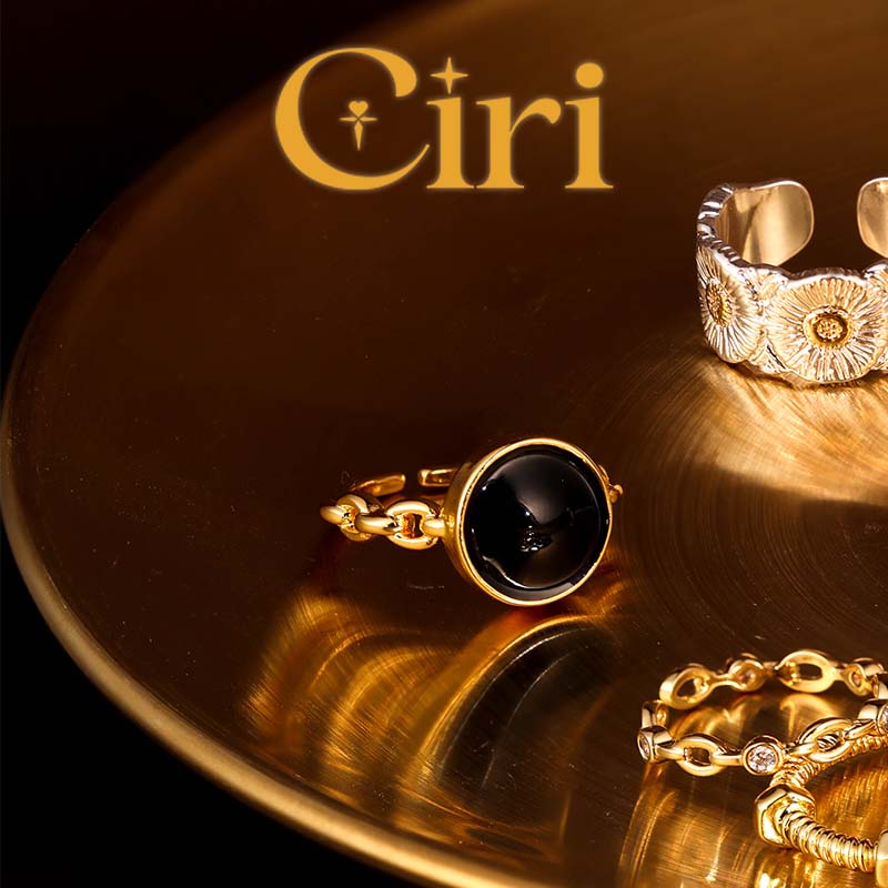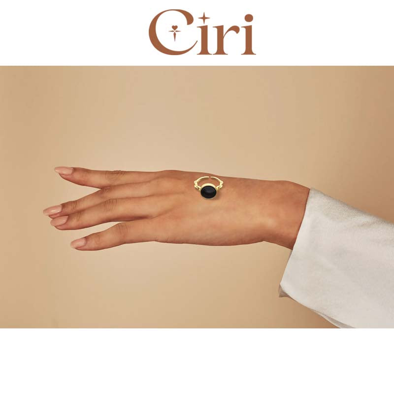 - Shape: The middle part of the circle is inlaid with black round glaze. The round shape is inspired by classic and timeless style. The ring arm is strung with hollow ovals, which adds a layered and fashionable feel to the ring.