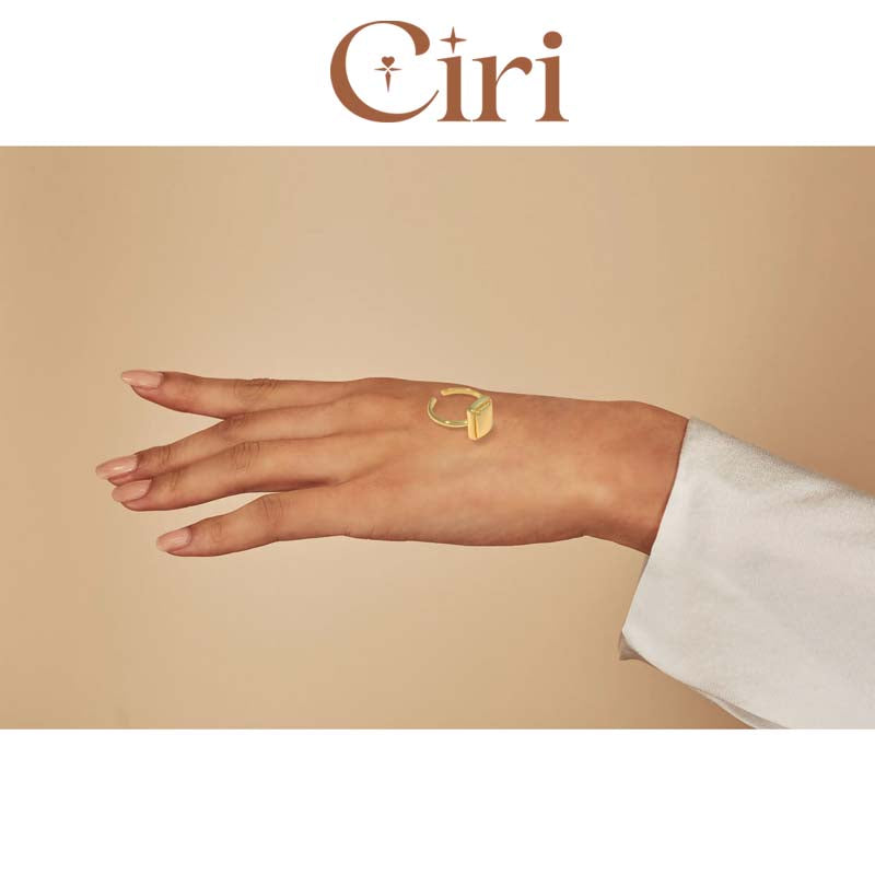 - SHAPE: This is a gold-colored ring. The decoration of the ring is a mirror-polished rectangular shape, giving a sense of stability and atmosphere.