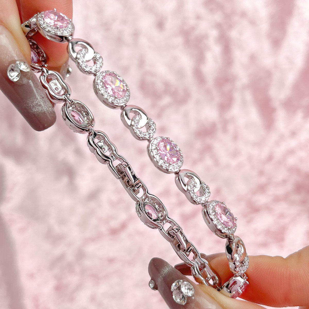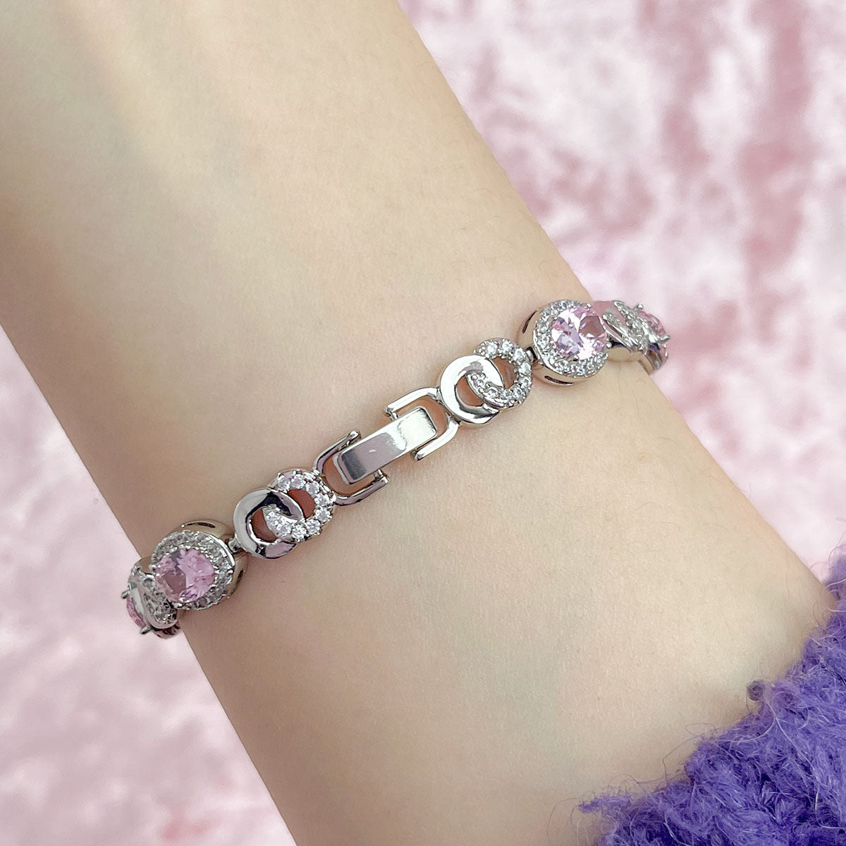 - High Quality AAA Zirconium pink round diamond mosaic bracelet
